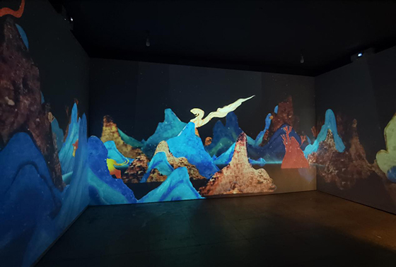 相比以前同為元宇宙概念的北京中華世紀壇《你好·玄界》,《你好·玄界》“影像濃度”極高,相應地其表現(xiàn)力、互動性、整體觀感也更為優(yōu)秀。因不同展覽之間成本不一,我們拋開影像畫面內(nèi)容不談,只針對影像的“展覽屬性”而言,在沉浸展中仍是重中之重。