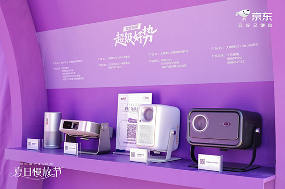 在各品牌產品展示臺上,大眾均可通過掃描二維碼進入京東產品頁,在現場人員的輔助講解下幫助消費者提升產品參數認知及品牌價值意識,對于入局電商的高品質投影品牌提供了莫大助力。