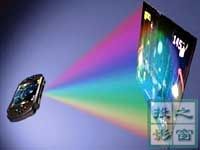 近日,韓國Iljin顯示公司展示了其最新研制的“硬幣型”激光投影元件,外形可用微小來形容的這款產品,是專為帶視頻功能的移動便攜設備研發的,包括視頻手機、GPRS以及PSP類的掌上游戲機。這款樣機將于明年正式推入市場。其投影元件產品采用單片LCD面板,可以在普通墻壁上投影7英寸的全彩畫面。 |