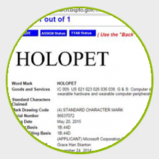 近日,微軟正在申請名為“HoloPet(全息寵物)”商標,雖然文件中沒有提及HoloLens,但是我們可以看出,這個商標的用意如同其名“全息寵物”。以HoloPet為關鍵字,在美國商標專利局上可以查詢到上圖的資料,記錄中顯示這個商標將應用于下列商品與服務:電腦;操作系統;虛擬現實;計算機軟件即,軟件設置,操作,配置,控制可穿戴硬件和可穿戴計算機外圍設備。事實上,這不是第一次看到了微軟全息寵物,早在微軟Build大會上,微軟就在可穿戴技術發展的主旨演講當中展示了一個名叫“Fang”的全息寵物狗。當然,商標作為商戰中的一種有力武器,有的可能是為了占個位置,不一定會馬上投入應用,但是更多的時候,代表了企業的一種傾向。同時,也能說明,微軟在這個市場上就有了一個良好的開端。 |
