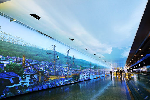 廣州白云國際機場在全長約200余米,空間面積超過2500平方米的時空長廊中,總共采用54臺NEC激光投影機,帶來一場奇譎夢幻的穿越之旅...