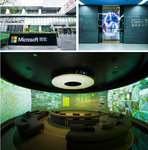 微軟高科技展示中心“微軟新視界”燈塔區,NEC運用12臺NEC PA803UL激光工程投影機在展示中心構建起雙層環形屏幕,增加了展示的科技含量,將微軟的物聯網、云服務、移動互聯和大數據用可視化進行了整合展示...