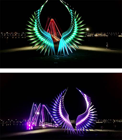 該項目選用了十余臺科視激光投影機,贏康完成了安裝施工等工作,配合龍橋燈光秀以及“鶴舞未來”雕塑燈光互動,讓中華海棠園的夜晚更加精彩紛呈,趁著夜色前來休閑的市民,終于放下一天的疲憊,沉浸在這充滿科技元素的海棠園林之中,感受科技與自然結合帶來的別樣美感。