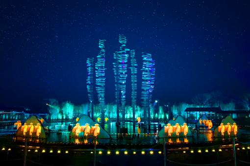 微笑廣場(chǎng)集合了格魯吉亞著名雕塑家塔瑪拉的動(dòng)態(tài)雕塑作品,以及北京奧運(yùn)會(huì)開(kāi)閉幕式燈光總設(shè)計(jì)團(tuán)隊(duì)打造的舞美視覺(jué)效果,配合廣場(chǎng)四周的園林景觀,不僅實(shí)現(xiàn)了殿堂級(jí)動(dòng)態(tài)藝術(shù)雕塑和傳統(tǒng)詩(shī)意情境的完美融合,更是對(duì)中國(guó)優(yōu)秀傳統(tǒng)文化與現(xiàn)代藝術(shù)跨界融合的一次創(chuàng)造性闡釋。