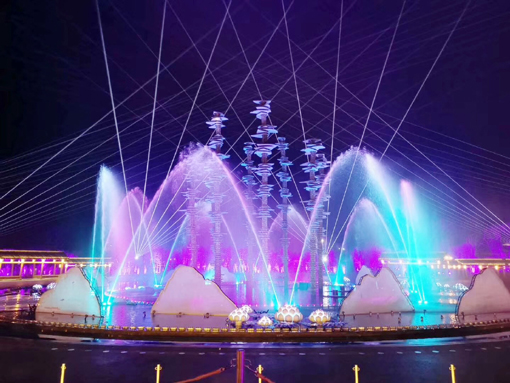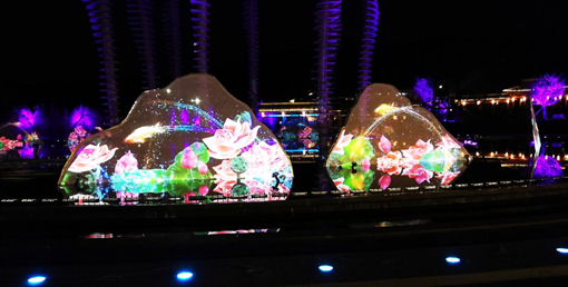 在整個(gè)項(xiàng)目中,贏康負(fù)責(zé)了18米高的金屬鏤空動(dòng)態(tài)雕塑投影,這種大型金屬活動(dòng)結(jié)構(gòu)投影國(guó)內(nèi)罕見(jiàn)。另外還負(fù)責(zé)了十座特殊紗幕投影以及水下水臺(tái)投影,共提供了十余臺(tái)3萬(wàn)流明的激光投影機(jī),完成了特殊造型、特殊介質(zhì)的挑戰(zhàn)性投影工作。在現(xiàn)場(chǎng),要考慮游客視角,投影與表演者的配合,以及水霧等現(xiàn)場(chǎng)環(huán)境對(duì)于投影畫(huà)面效果的影響,贏康工程師更是憑借豐富的項(xiàng)目經(jīng)驗(yàn),保證了投影的完美呈現(xiàn)。