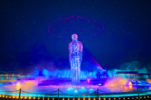 整個(gè)演出,通過(guò)水下舞臺(tái)裝置、全息數(shù)字影像屏、霧森、景觀環(huán)境藝術(shù)照明和高流明激光投影五大視覺(jué)演繹手法,實(shí)現(xiàn)了舞臺(tái)演出與現(xiàn)實(shí)景觀的完美結(jié)合。同時(shí),300余架無(wú)人機(jī)翱翔在廣場(chǎng)上空,與演出相呼應(yīng),陸地與空中表演相結(jié)合,共同締造了微笑廣場(chǎng)360°沉浸觀演的夢(mèng)幻表演景致,點(diǎn)亮了拈花灣的夜晚。 |