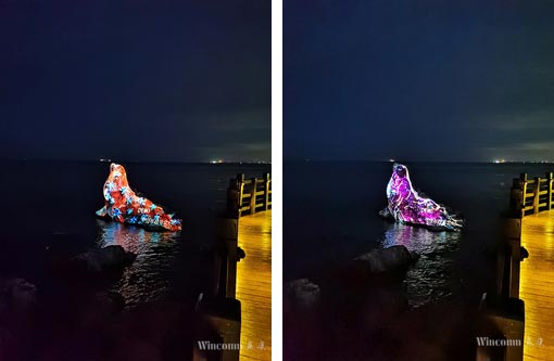 在游覽時,游客還能看到多處山體、海礁投影。逼真俏皮的“海豹”,威風凜凜的“臥獅”,以及絢爛多姿的海邊巨石,多種投影讓游客目不暇接,一路上驚喜不斷。