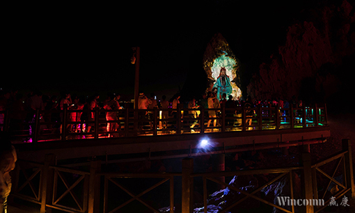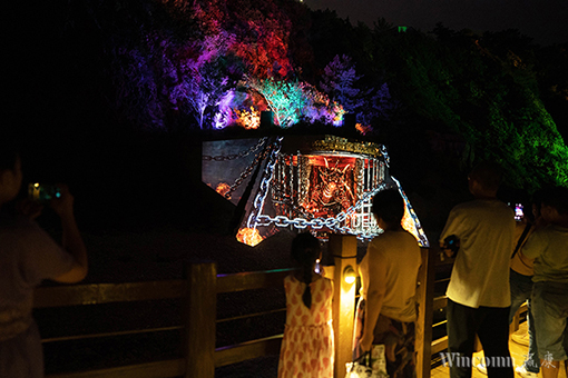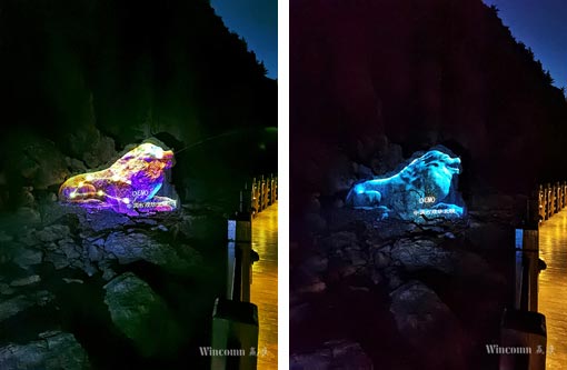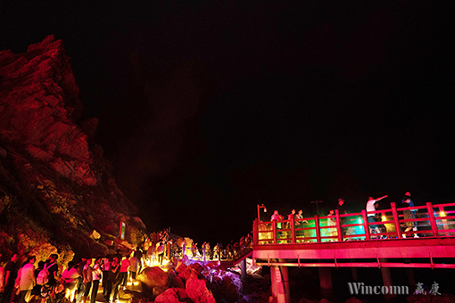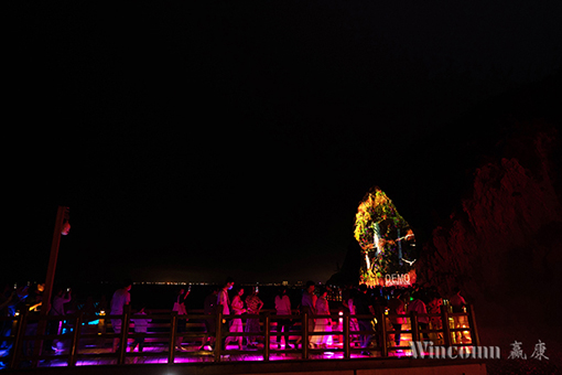 贏康科技為該夜游的投影項目提供了數十臺科視投影機,并且進行了指導安裝工作。該項目中的投影工作很具挑戰性,既要保證投影畫面在山體、崖壁、礁石等自然介質上完美呈現,還要保證畫面的亮度和細膩度夠高,在施工過程中更是不能破壞任何原有崖壁植被和樹木,同時還需要注意海邊的鹽度、濕度對于投影系統的影響。