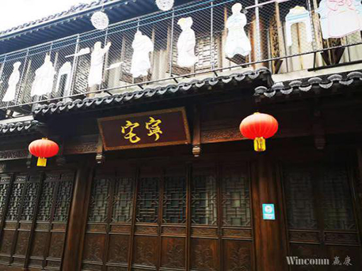 《南京喜事》的演出場所位于南京熙南里,一座挑高10米的宅院,占地超千平米的仿清南京城的建筑中。為真實還原古代南京大家族的生活場景,制作團隊耗費5078小時監工制作,精心打磨了827樣道具,以及21間國風演出場地。