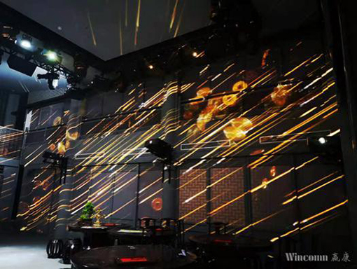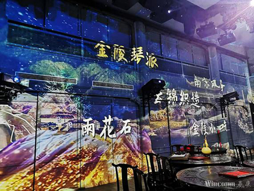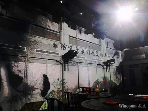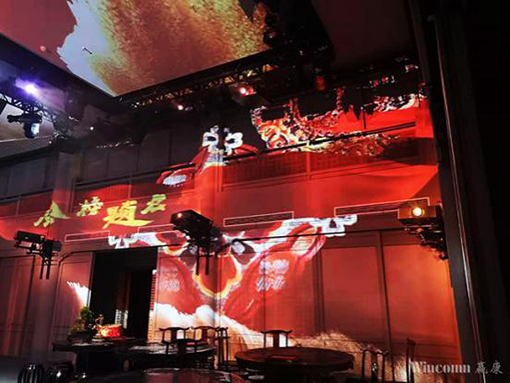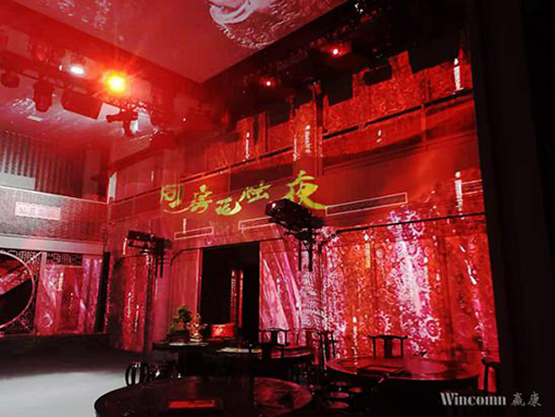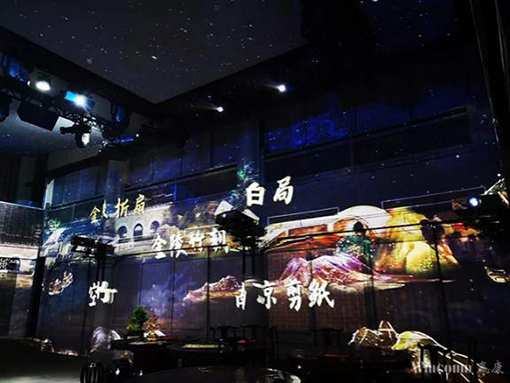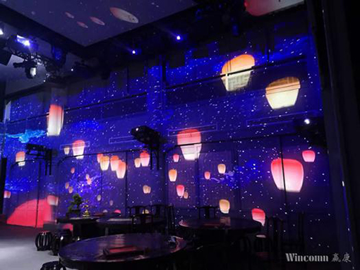 該演出空間的投影介質非常多樣,天花、墻體、窗戶、樓閣等多種場景都涉及到投影,不同的成像介質,對投影要求極高,專業演出又對投影畫面有著近乎苛刻的一致性要求,要求圖像清晰銳利,始終如一,投影畫面需要保持高度的一致性。
