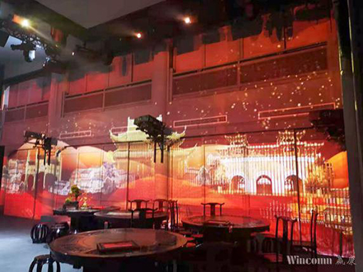 贏康股份提供了數十臺科視投影設備,其專有的色彩增強技術,不論在什么樣的投影介質上,都可呈現令人驚嘆的視覺效果。內嵌的幾何校正和融合引擎,可以快速輕松搭建、對齊并維護非常規屏幕和多投影顯示陣列。投影系統性能穩定,可全天候平穩運行,幾乎可免維護運行,保證了劇場每天高頻次的演出需求。