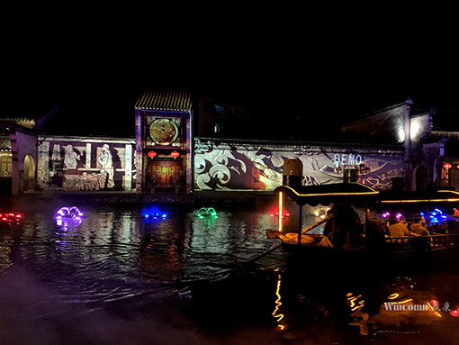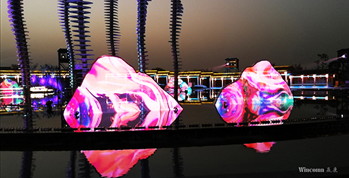 技術介紹:贏康為該投影秀機完成了投影系統設計工作,提供了7thSense媒體服務器和數臺科視Crimson