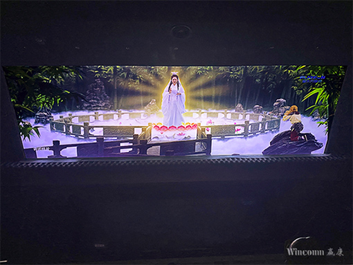 贏康為該項目的投影系統采用了7thSense媒體服務器,其無損無壓縮的特點保證了片源的在各種投影設計中的真實還原,“幻影成像”投影角色與真人演員真假難辨,虛實場景渾然一體;采用Alcorn表演控制系統,精準控制每個表演環節的配合;采用了Extron光纖產品,保證了舞臺信號源的長距離傳輸穩定可靠。