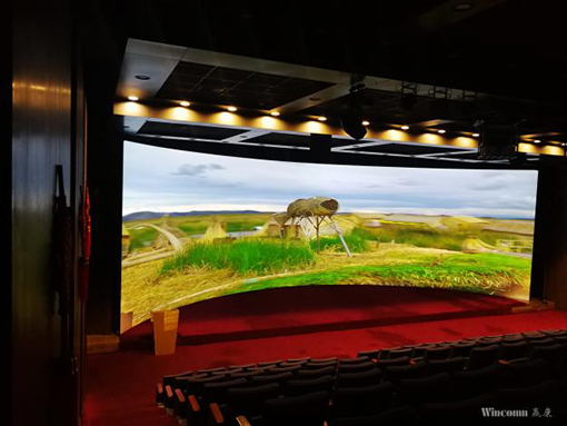 針對館方需求,贏康設計了超高亮度、超高分辨率、精準色彩還原、無縫融合拼接的4K投影系統,在巨型弧幕上投射出驚艷影像,極具沉浸感。同時,贏康還設計了無損無壓縮的媒體服務器,來實現4K影片的無損播放,并采用表演控制系統實現對整個影廳音視頻系統的精準同步控制,實現了視覺聽覺感覺的相融一體。