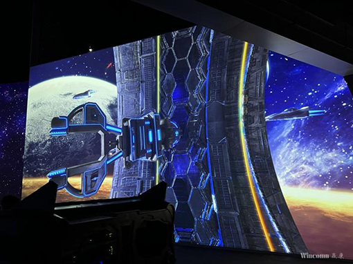 為完善項目布局,進一步深化景區主題文化游樂IP,為游客帶來文化科技旅游新體驗,白鹿原影視城打造了國內首個大型沉浸式無軌、無人駕駛飛船黑暗乘騎項目——“公元一萬年”。贏康科技負責該項目的視音頻系統,打造沉浸式史詩級電影視效,并負責了項目的總控系統,實現移步換景“幀同步”級的全沉浸體驗。