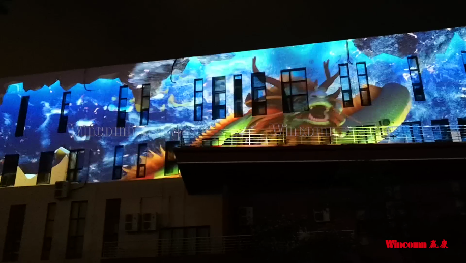 青島多媒體學院大樓投影現(xiàn)場圖