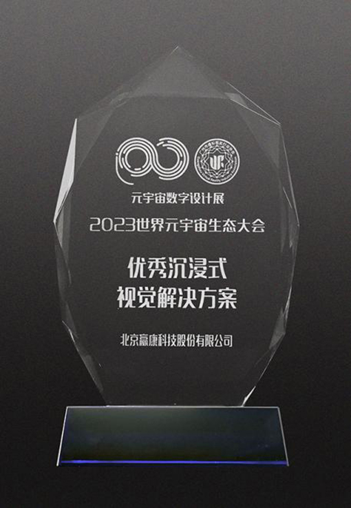 2023世界元宇宙生態博覽會盛大開幕期間,還舉辦了主題為“無界·超越·共生”的2023萬人盛典頒獎大會。贏康在該大會上榮獲“元宇宙VR/AR/MR/XR優秀硬件獎”、“優秀數字文旅項目獎”、“優秀沉浸式視覺解決方案獎”、“優秀數字設備產品獎”四項大獎。
