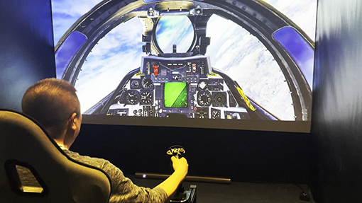 展位現(xiàn)場(chǎng)的人氣項(xiàng)目,是科影達(dá)T50投影機(jī)的夜視訓(xùn)練互動(dòng)展示區(qū)域,參觀者可以通過佩戴紅外夜視儀,體驗(yàn)飛行模擬場(chǎng)景。