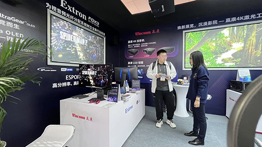 Extron品牌展區(qū)同樣聚滿了好奇的參觀者,贏康在展位搭建了真實(shí)的電競(jìng)場(chǎng)景,Extron FOX3