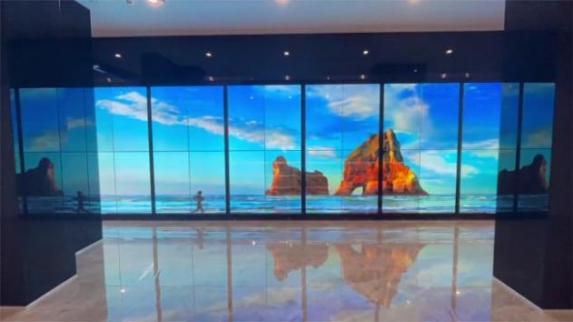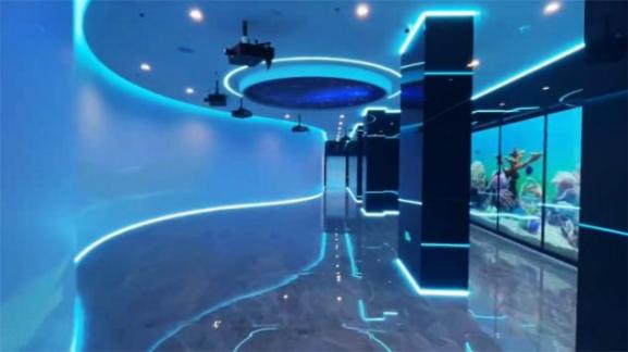 首先,是針對大廳入口的顯示系統完成了升級改造工作,通過OLED透明拼屏搭建顯示系統,確保每個顯示屏的無縫拼接和精準對齊,并對顯示屏的畫面進行調整校準,最終確保顯示系統內容流暢精準,畫面精美清晰,從視覺層面來看,顯示系統帶來了令人驚艷的效果,與整體空間實現了和諧統一,營造出濃厚的科技感與智能感氛圍。