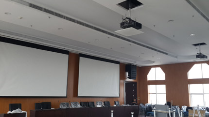 兩個大禮堂共使用4臺松下DLP工程投影機PT-FDZ675L作為視頻會議投影設備,另外1臺PT-SLZ67C、4臺PT-FDW43分別單臺投影于五個會議室,松下DLP工程投影機獨具第二代強光色彩補正功能修正畫面色彩,高流明、高穩定性等絕對優勢保證了該項目的成功完成。