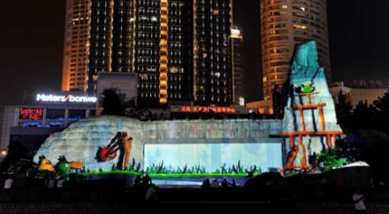 重慶市觀音橋戶外投影項目,使用7臺PT-SLX16K,采用正投融合結合Coolux表演回放及在線包裝系統,影像從廣場上的投影室投射至廣場正面的石橋雕像,畫面精確布滿石橋。據悉,該項目為松下LCD系統工程投影機在重慶地區完成的首個戶外投影項目,既豐富了市民的文化娛樂生活,又為城市景觀增添絢麗色彩。