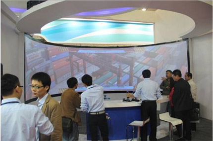虛擬仿真是虛擬現(xiàn)實項目中常見形式,通過多通道三維場景建設,輔以外設操作場景變化,達到虛擬場景漫游的目的。展項采用180度弧形,四通道融合顯示。展項設備為NEC