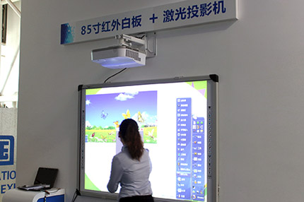 作為在教育領域深耕多年的企業,為了讓參會人員更好的體驗現代教育信息化課堂,現場搭建視聽室和模擬教室,還有最新款短焦投影機搭配電子白板,互動課堂一體機演示等展項隆重亮相。 |