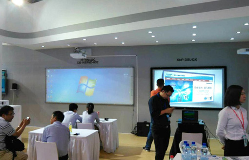 在智慧教室場景應用中,PROPIX(派克斯)投影機+Donview(東方中原)電子白板的經典組合吸引了諸多與會者的駐足體驗。據介紹,PROPIX(派克斯)激光投影機就是東方中原專門針對教育市場需求推廣的激光光源激光短焦投影機,不僅具有高分辨率、高亮度、高對比度等顯著特色,更具有長達20000小時的壽命,與之搭配的Donview(東方中原)電子白板產品,如采用Donview(東方中原)DB-145IWD-H01白板,畫面尺寸高達145寸,這是首款可實現前維護的紅外感應技術的電子白板產品,在展會現場獲得了高度的關注。