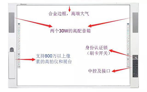 一體化設(shè)計:紅外電子白板、電腦、高拍儀或展臺、中控、功放音響、麥克風等功能模塊,集成在整個框架內(nèi),無外露連接線,非單側(cè)或雙側(cè)箱體連接式結(jié)構(gòu),由于一體化的設(shè)計理念使得各模塊間有更好的兼容性,避免傳統(tǒng)方案多種設(shè)備在施工現(xiàn)場無法兼容;