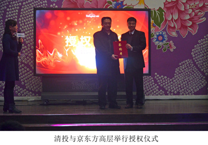 2014年2月26日下午,清投110寸VMAX智能巨幕全球首發會在尤倫斯當代藝術中心隆重舉行,上演一場科技與藝術的激情碰撞。吉總在致辭中介紹,VMAX智能巨幕最顯著的特點就是“一體化”與“大”,它采用突破吉尼斯世界記錄的110寸最大單屏液晶,一體化拼接模式,毫無割裂感。此款產品的誕生,同時離不開京東方科技集團的支持,京東方集團經過多方考察與商討,最終選擇與清投視訊合作,雙方領導在發布會舉行隆重的簽約儀式,宣告清投成為京東方110寸液晶顯示巨幕電力行業的總代理! |