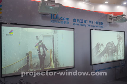 現場,瑞事達虛擬現實VR體驗區通過VR眼鏡結合實景,讓觀眾體驗到逼真的虛擬環境。在體驗區外,利用兩臺麥克賽爾HMP-TW3010超短焦投影機分別展示體驗區內及虛擬眼鏡里的實時情況,讓體驗區外觀眾可以對內部情況一目了然。HMP-TW3010具有3000流明亮度,WXGA分辨率,不占用空間,在墻面即完成了大畫面顯示。