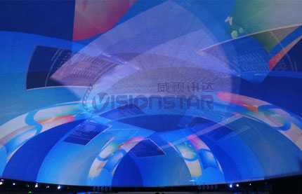 10月投影機融合,威視訊達實施工程師開始進行融合調試。異型的橢圓天幕和巨大的顯示面積,傳統的硬件融合不能滿足項目的要求。天幕融合系統選用威視訊達的嵌入式的網格融合技術,網格技術準確對變形的投影畫面完成光路處理和曲面校正。14個投影畫面的曲面完成矯正,獲得一個統一正規的圖象,快速準確的完成14通道的投影融合和網格調整,達到無縫融合效果。