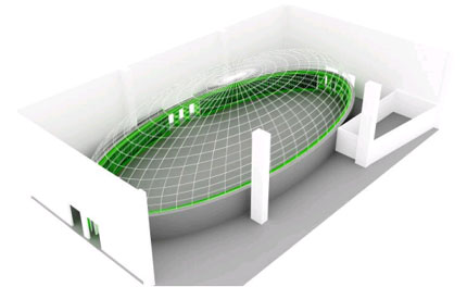 主展示空間長28m,寬15m,高4.8m,橢圓形穹頂