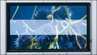 不同的會議環境,不同屏幕的對比;在常規狹長型會議室,配置4:3高增益幕dnp Supernova One;在常規扁寬型會議室,配置16:9的低增益、寬視角dnp Supermova LG;在需要保持裝修風格的會議室,配置靜音電動幕dnp Supernova Winflex;在常規有背投空間的會議室,配置對投影機亮度要求不高的dnp新一代背投幕Zenith。