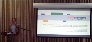國際公司總裁Greg Jeffreys關于ANSI/INFOCOMM 3M-2011投影圖像系統對比度標準的培訓。ANSI/INFOCOMM
