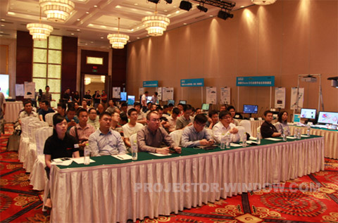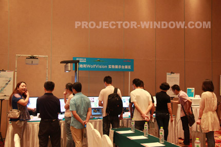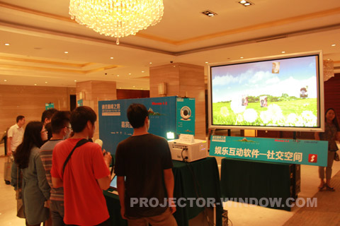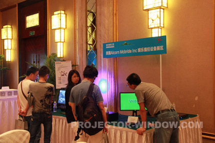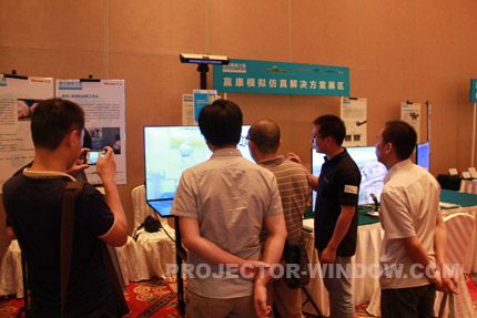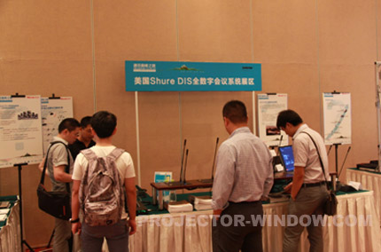在大廳內我們依次會看到激光投影正投演示區、創意投影展區、贏康模擬仿真解決方案展區、美國Shure(舒爾)