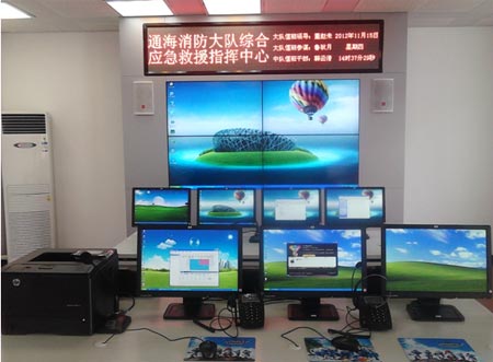 通海縣消防119指揮中心是天道啟科為云南省建設119指揮中心又一個順利完工的項目。119指揮中心海通消防大隊綜合應急指揮中心項目,采用天道啟科推薦的優派2*2、