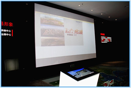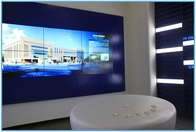 展廳運用的6塊,2X3液晶拼接屏,是鋆欣將國際卓越的Wynntek液晶高清晰度數碼顯示技術、Wynntek液晶無縫拼接技術、分布式圖像處理技術、多路信號切換技術、網絡技術、集中控制技術等的應用綜合為一體,形成一個擁有高亮度、高清晰度、高智能化控制、操作方法先進的大屏幕液晶顯示系統。整套系統的硬件、軟件設計上已充分考慮到系統的安全性、可靠性、可維護性和可擴展性,存儲和處理能力滿足遠期擴展的要求。整套方案運用聲、光、電等信息化智能方式科技手段一站式讓參觀者直觀了解昌黎未來的發展。