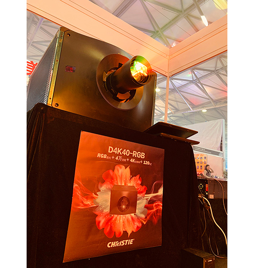 展會(huì)現(xiàn)場(chǎng),影片內(nèi)容在墻體上精美呈現(xiàn),艷麗逼真的畫面與真實(shí)的裸眼3D效果,吸引現(xiàn)場(chǎng)觀眾紛紛駐足觀看。投影秀由科視D4K40-RGB投影機(jī)投影,通過(guò)7thSense無(wú)損無(wú)壓縮媒體服務(wù)器播放。