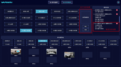 傳統集群會議室,會議信號通常只在區域內部互通以確保安全,但主、分會場等大規模會議時又需要打破區域界限,會議管理人員就沒辦法完成任務了。贏康的“用管監維”方案提供“基于權限的轉播”功能,既保證了信號跨區域互通,又能確保系統安全。