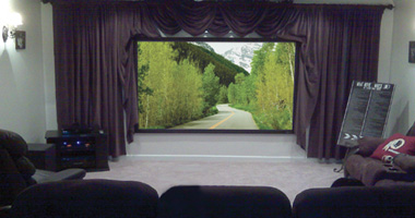家庭影院投影系統是跟隨建造者的不同需求打造的,既有投資百萬級的奢華家庭劇院,也有付出幾萬元自己打造的溫馨家庭影院,就如同買家具可選擇歐洲進口價值不菲的沙發,也可自己買宜家的產品組裝,相比只是不同的樂趣而已。本篇文章的房主打造的影院花費6000美元,同樣也適合國內愛好家庭影院的普通白領人士。這套家庭影院采用了106英寸Draper屏幕,花費1000美元;投影機選擇的是Optoma