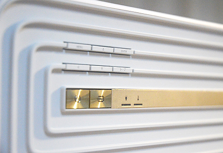 Optoma UHD660 外觀設計簡約,邊緣柔和,金色的鏡頭邊線與貫穿機身正面與兩側的“腰線”簡潔華麗,尤為搶眼,讓它更顯優雅輕盈。