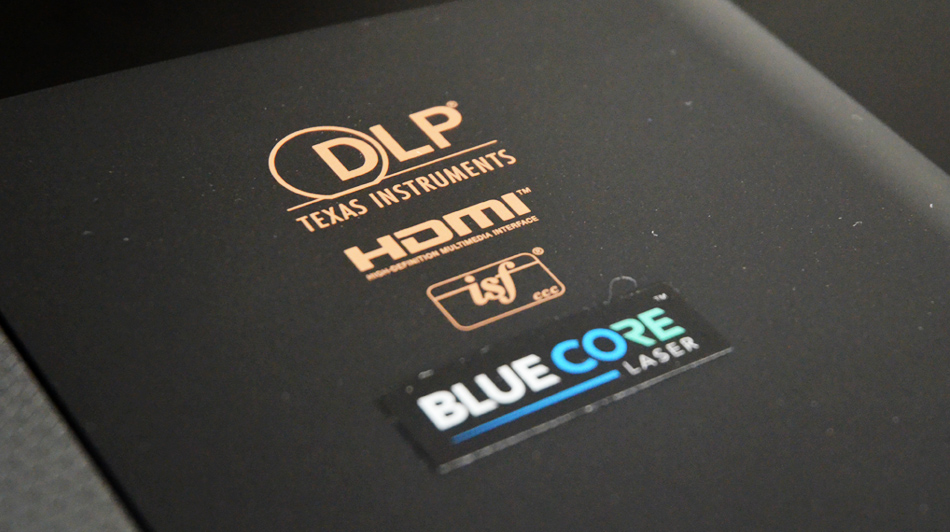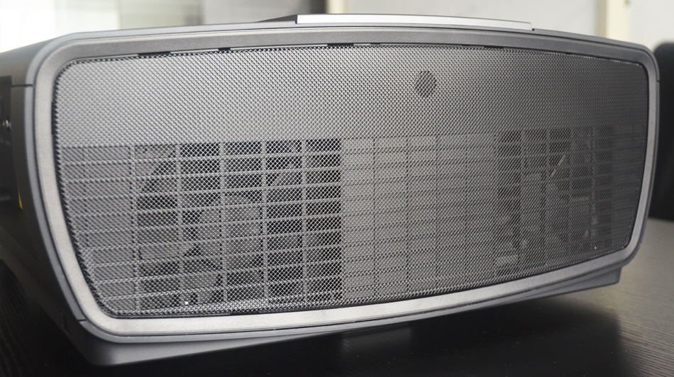 BenQ LK970 機身設計很具科技之感,鏡頭中置,一圈亮藍色細條是點睛之筆,兩側散熱口格擋很有視覺沖擊力,機身上的細膩紋理提升“顏值”,整體來看霸氣十足。