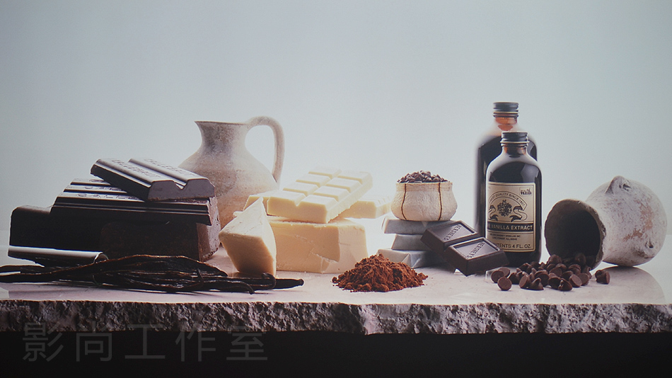 白色巧克力與瓷器邊緣表現清晰,暗場質感很不錯