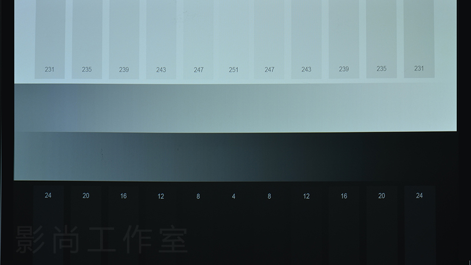 I5投影畫面中灰階線條清晰銳利,色彩自然