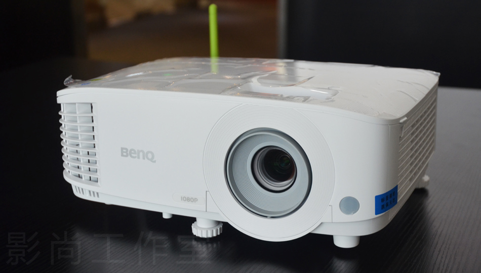 BenQ E580外觀沉穩,頗具流線型風格,細節質感不錯,“綠色尾巴”天線是這一系列產品的顯著標志之一。性能方面,它采用DLP技術,具有1920×1080分辨率,亮度為3500流明,對比度12000:1,投射比為1.55-1.7:1,整機重量2.6公斤。