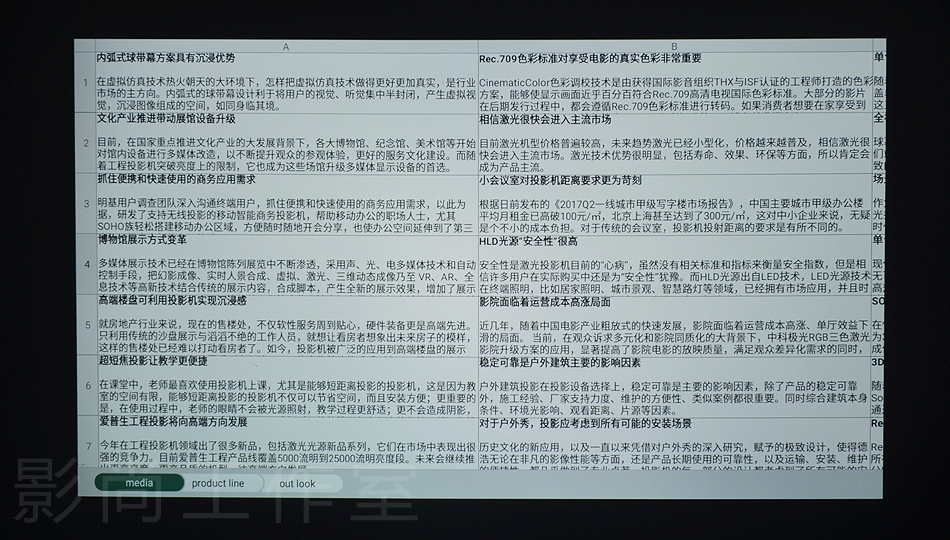 在豐富的高清晰度測試視頻中,E580表現出精彩的動感影像;對于當下重視視頻表達的趨勢,商用投影機的影像表現力越來越重要。