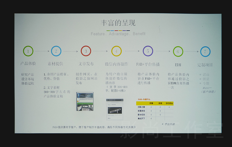 影尚工作室介紹: "創新" 永遠是發展的動力, 影尚視覺工作室的建立旨在推動大屏幕投影可視化解決方案在商務演示、會議教學、影像工程、家庭影院、公共顯示與娛樂等領域的大量應用, 挖掘潛在投影產品行業與用戶,提升大眾對投影可視化產品的認知, 細化市場需求,擺脫低級競爭、強調增值概念,增強行業競爭力。