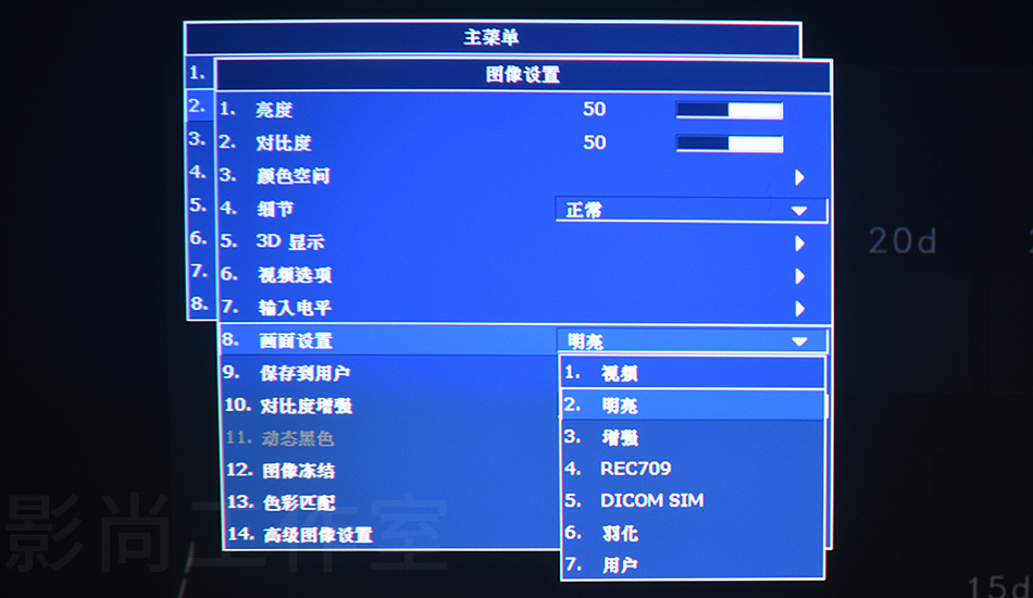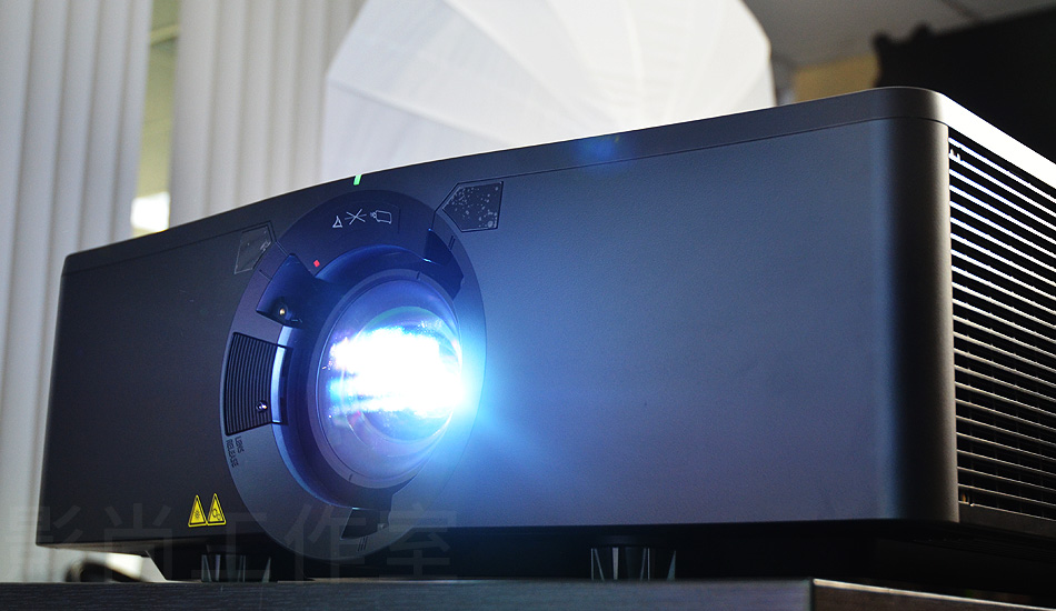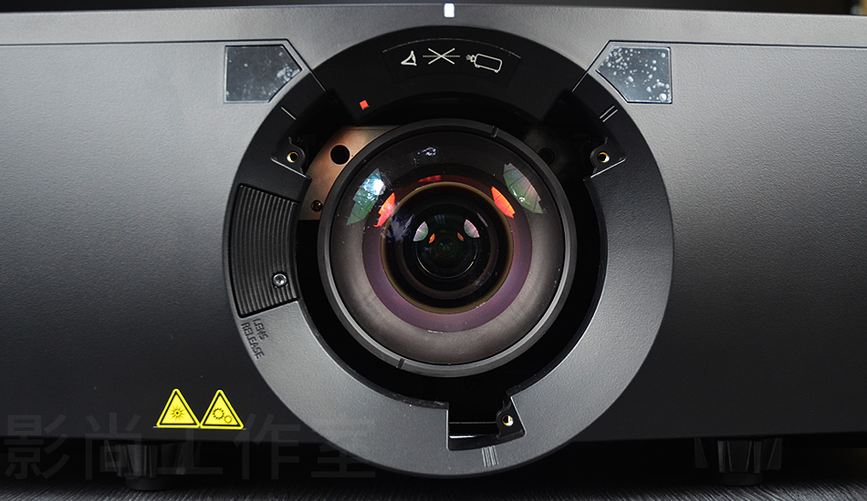 為了適配評測室空間,配備投射比0.6:1短焦鏡頭。電動鏡頭位移范圍±140% 垂直與±50% 水平(不同鏡頭參數有差異)